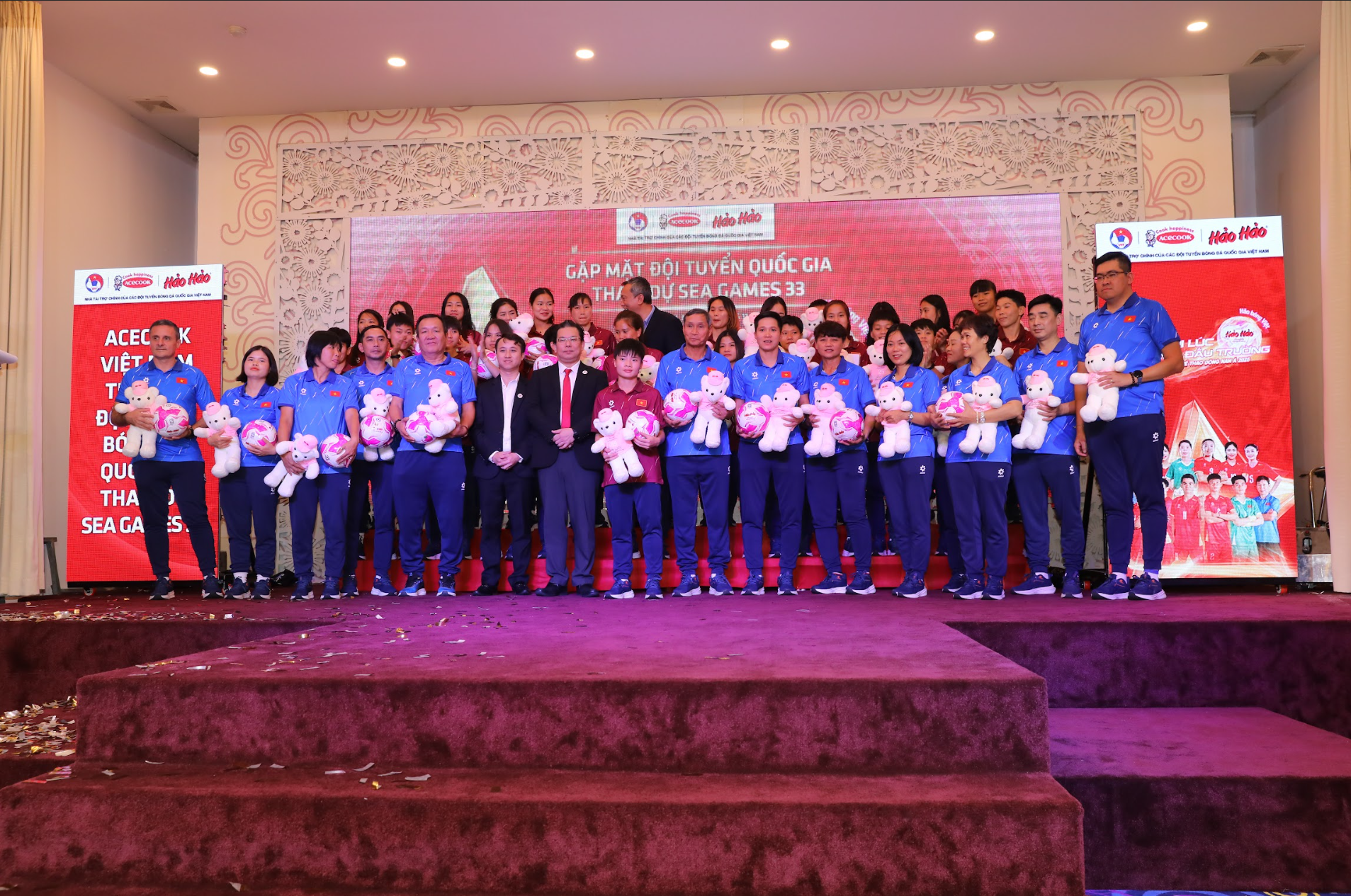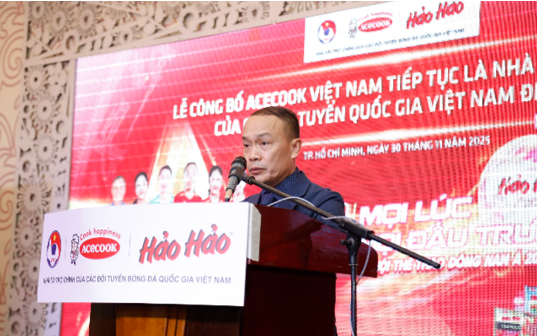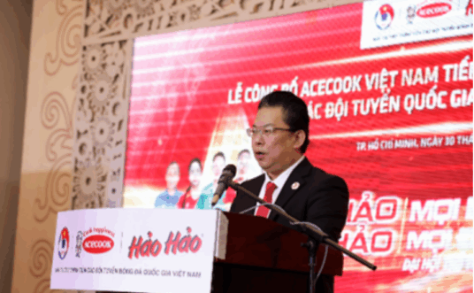 Acecook Vietnam keens on its mission of "Bringing happiness to Vietnamese society through sports" by the sponsoring contract until 2030. The event is to announce its commitment for long term companionship with Vietnamese football. In the event, Acecook Vietnam leaders also granted souvenir gifts to all national football players and shared its confidence on Vietnam championship in 33th Sea Games.